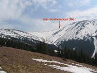 | Пер. Бребенескул (1Б). Фото зі схилів Чорногорського хребта з під вершини Бребенескул. 04.05.2007 16:3 |